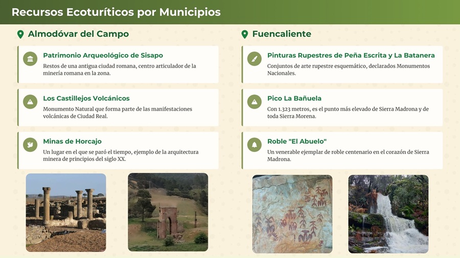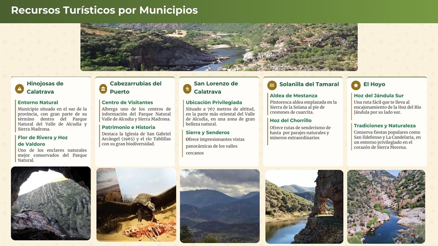 Con un entorno dominado por dehesas de encinas y amplios espacios abiertos, donde la ganadería extensiva sigue siendo un elemento clave del paisaje. Es uno de los municipios menos poblados del parque, lo que refuerza su atractivo para un turismo lento, sostenible y poco masificado.